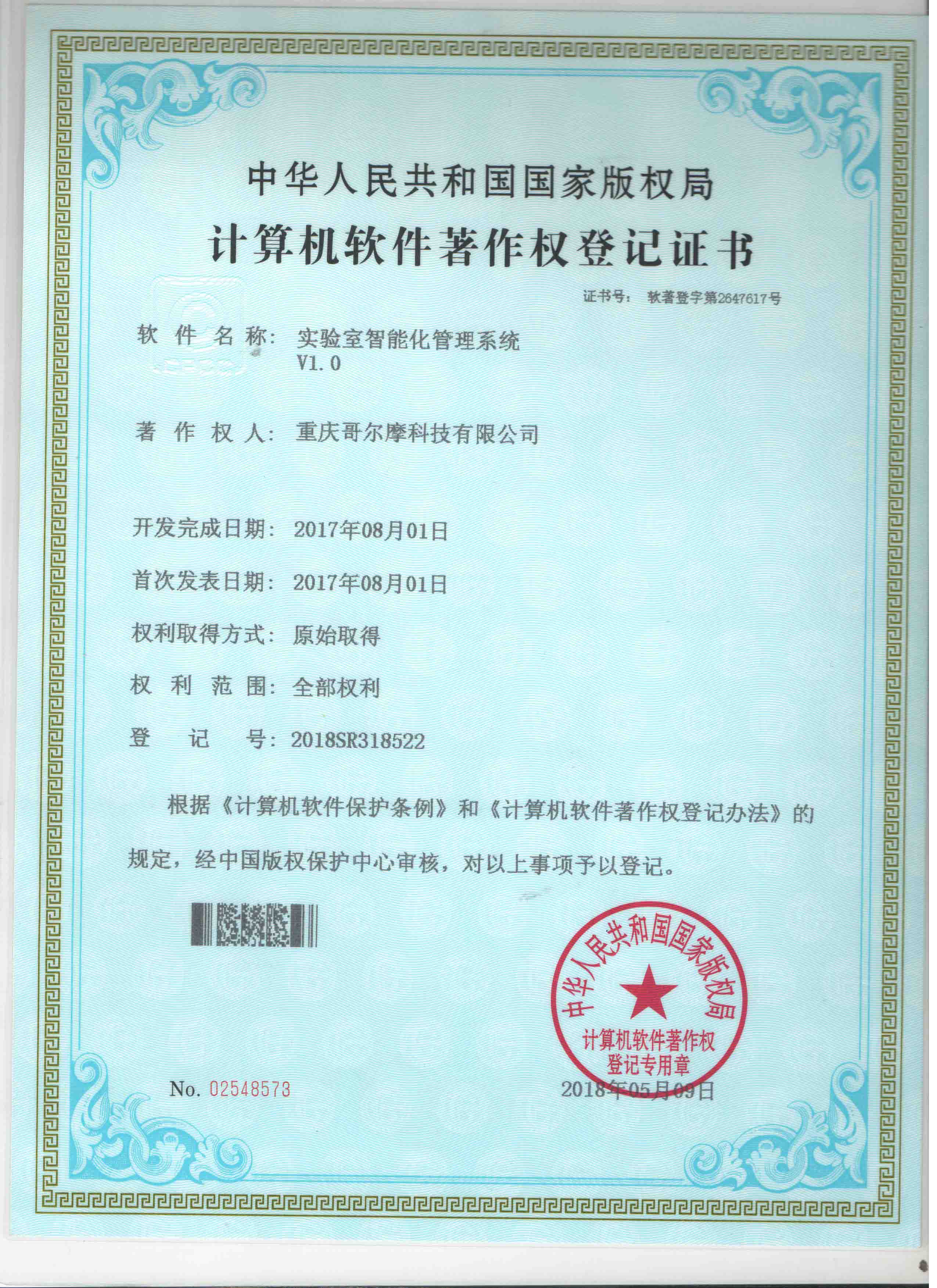 近日,公司已通過中華人民共和國國家版權(quán)局的審批,2018年5月9日獲得中華人民共和國國家版權(quán)局頒發(fā)的計算機(jī)軟件著作權(quán)登記證書。重慶哥爾摩科技有限公司將不斷進(jìn)行電磁兼容領(lǐng)域的技術(shù)創(chuàng)新和改革,進(jìn)一步提高行業(yè)的核心競爭力,也為公司的發(fā)展提供了強(qiáng)有力的科技支撐。