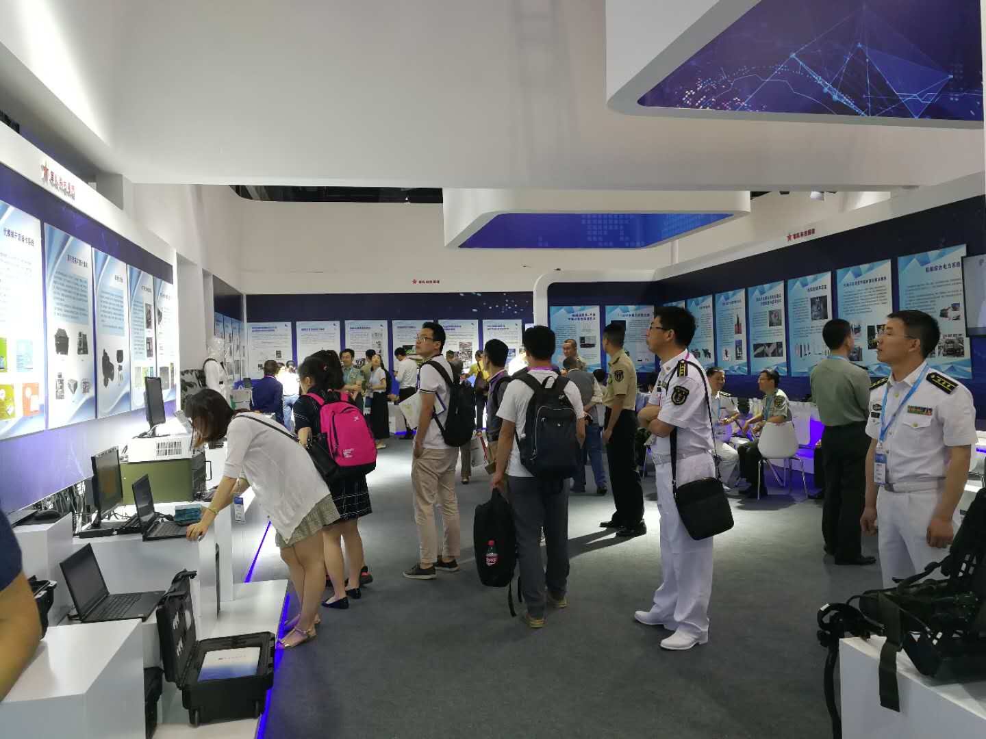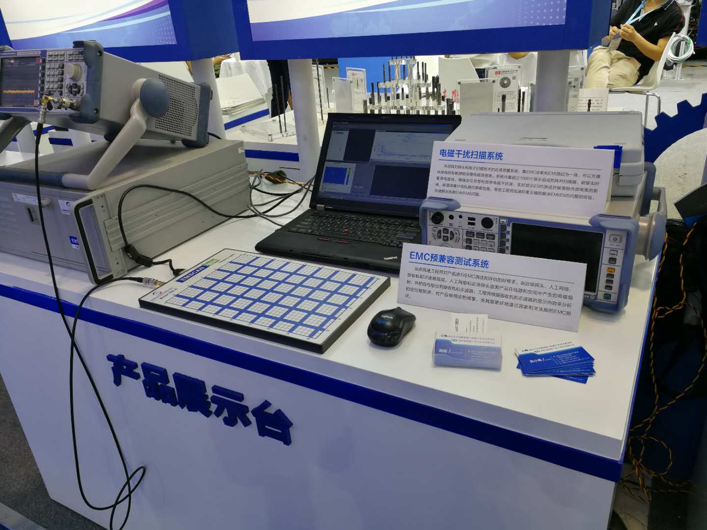會(huì)場(chǎng)一號(hào)廳主要是中國(guó)海陸空的兵甲裝備展示,其中包括無(wú)人機(jī),無(wú)人直升機(jī),無(wú)人駕駛智能車,安防裝備,船舶重工等,會(huì)場(chǎng)二號(hào)廳則是重慶各大地區(qū)和重慶各個(gè)高校的高新技術(shù)成果展,其中在重慶理工大學(xué)展臺(tái),向我們展示了EMC預(yù)兼容測(cè)試系統(tǒng)和電磁干擾掃描系統(tǒng)設(shè)備,李旭博士還給我們演示了EMC預(yù)兼容測(cè)試系統(tǒng)的操作,讓我們對(duì)EMC測(cè)試系統(tǒng)設(shè)備有了更進(jìn)一步的認(rèn)識(shí)。