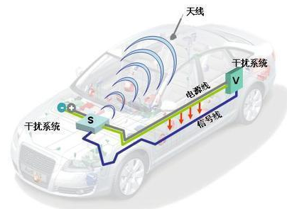 車內(nèi)干擾是指汽車電子設(shè)備工作時內(nèi)部的相互干擾,如發(fā)動機的點火系統(tǒng)、閃光器、觸點式電磁振動電喇叭、雨刮器、儀表系統(tǒng)等均會產(chǎn)生一定的傳導(dǎo)干擾和輻射干擾電磁波。傳導(dǎo)干擾通過汽車導(dǎo)線直接輸入無線電設(shè)備和電子設(shè)備內(nèi)部,而輻射干擾則是在空間傳播,通過天線(如點火系高壓線就相當(dāng)于天線)輸入無線電設(shè)備內(nèi)部,進而影響電子電器設(shè)備的正常工作。