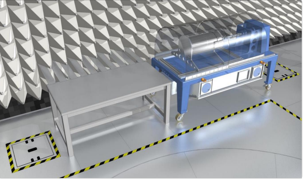 可以用標(biāo)準(zhǔn)叉車(chē)在MEC暗室內(nèi)將bluebox由準(zhǔn)備區(qū)域移至測(cè)試區(qū)域。