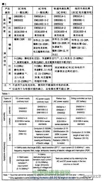 表1不包括以無線電發(fā)射接收為主要功能的玩具(如遙控車、對講機(jī)等).歐洲對該類產(chǎn)品有專用標(biāo)準(zhǔn)要求,在此就不另行介紹。